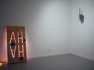 Lizzie Wright. AH HA. Plywood, paint and colored Christmas lights with fake flowers. 48 inches x 24 inches x 6 inches. 2013.